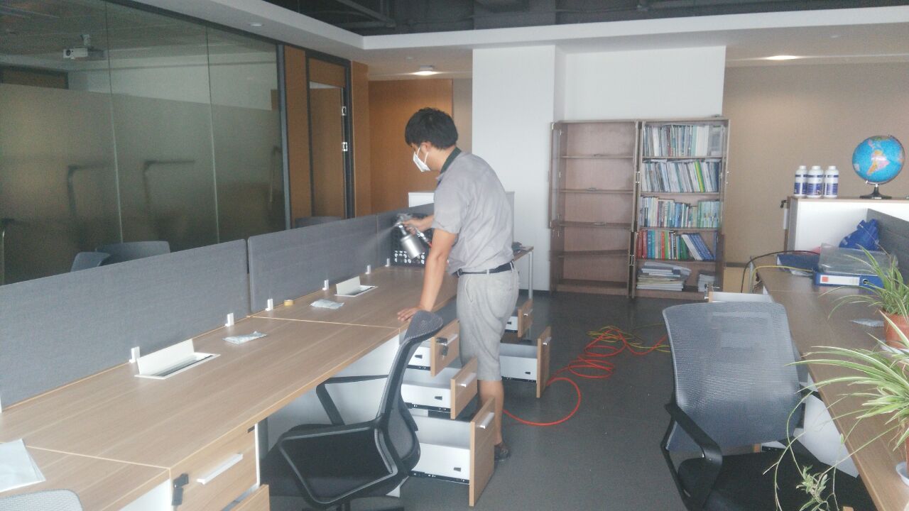 針對其結(jié)構(gòu)特點及污染情況,我公司技術(shù)及施工人員采用專項專治的施工方案,針對重點污染區(qū)域,重點治理,對重新粉刷的墻面使用我公司研發(fā)的利純納米光觸媒進行甲醛清除,這些地方光照量較充足,便于光觸媒對甲醛的分解,對于刷漆的辦公家具、書桌、儲物柜、木門、地板等采用甲醛清除劑進行處理,針對不同污染物,做分別處理。經(jīng)過我公司重點治理,一周后復查結(jié)果各種有害物質(zhì)含量均已達到國家標準以內(nèi),各項指數(shù)均達標??蛻魡T工感覺氣味明顯消除,為業(yè)主清理甲醛,還顧客一個安全,健康的生活環(huán)境是我們?nèi)w工作人員的責任,下面為施工現(xiàn)場照片: